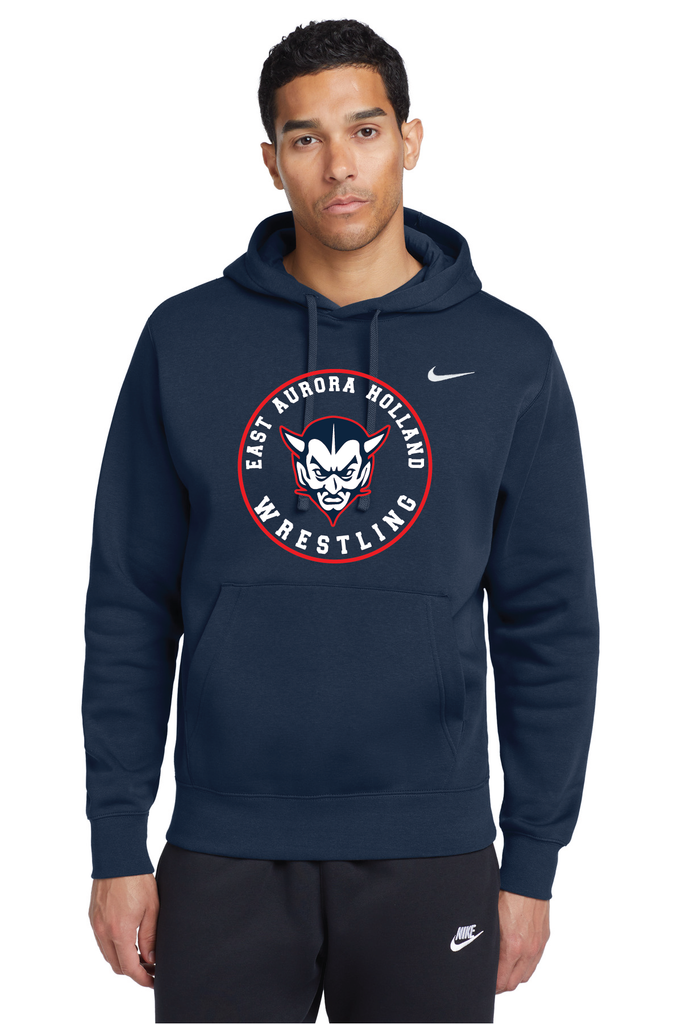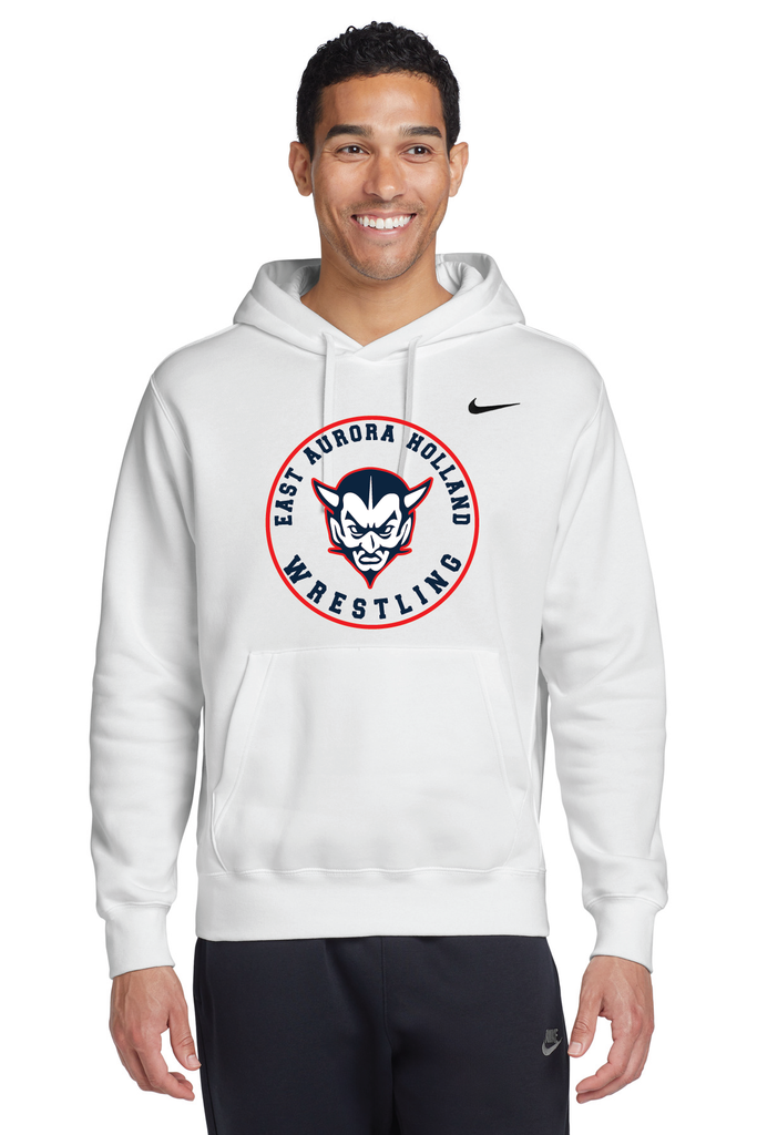 A closet staple, this hoodie combines classic Nike style with the soft comfort of brushed-back fleece. A jersey-lined, 3-panel hood with dyed-to-match drawstrings offers adjustable coverage. Rib knit cuffs and hem. Front pouch pocket. A contrast Swoosh design trademark is embroidered on left chest. Made of 8.2-ounce, 80/20 cotton/polyester with a 100% cotton hood lining.
