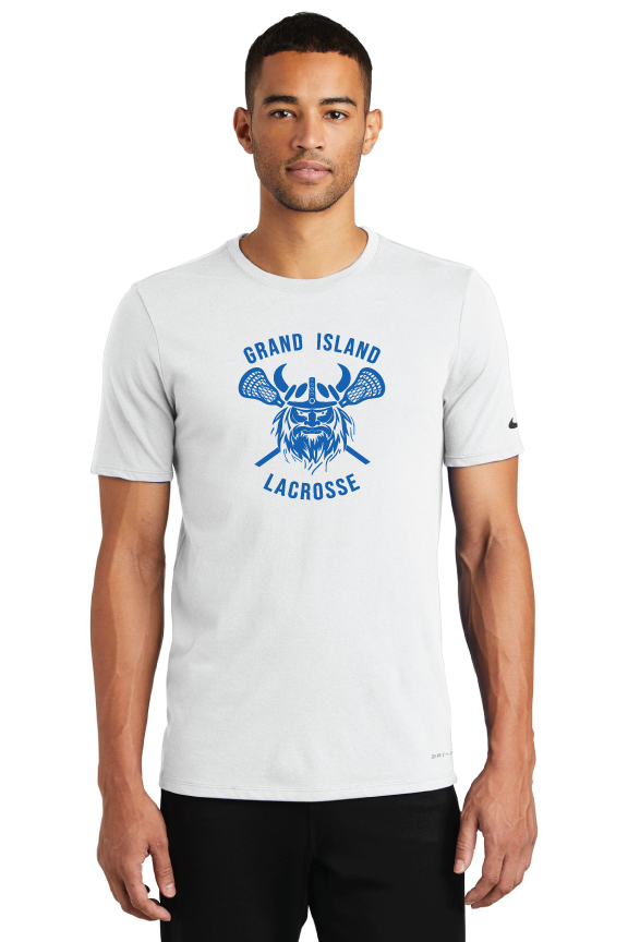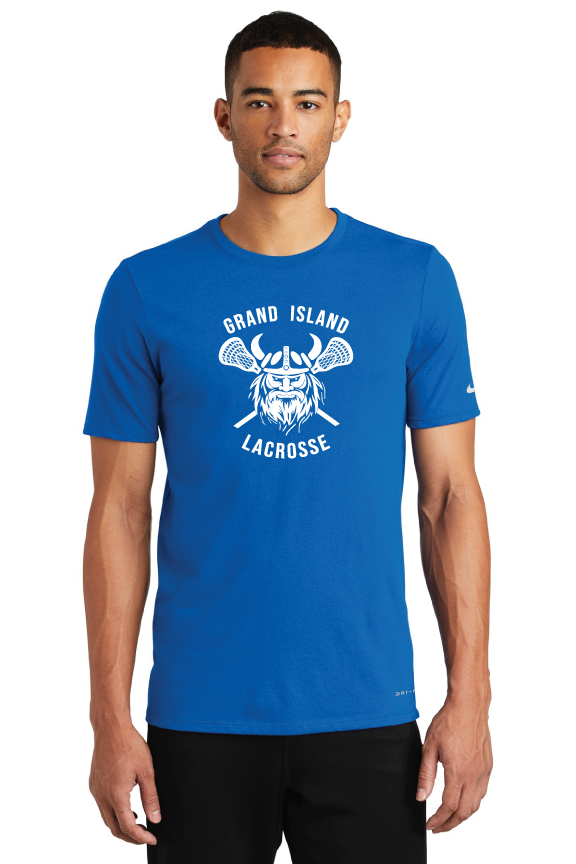 This Nike performance tee features sweat-wicking fabric to help keep you dry and comfortable. Durable rib knit crew neck. Heat transfer label for tag-free comfort. Double-needle stitching throughout. Contrast heat transfer Swoosh design trademark on left sleeve. Made of 4.7-ounce, 60/40 cotton/poly Dri-FIT fabric.